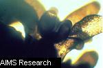 Photomicrograph of a coral polyp showing clusters of endosymbiotic algae |