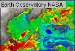 Dès que l'on peut observer un phénomène tant soit peu voyant sur la planète, la NASA s'emploie à l'observer. Les zones riches en phytoplanctons ont donc été photographiées à l'occasion de leur efflorescence (bloom) par satellite et analysées. Cette année 2003, la NASA a diffusé plusieurs clichés de bloom (efflorescence chlorophyllienne) qui sont rassemblés dans le cadre ci-dessus.